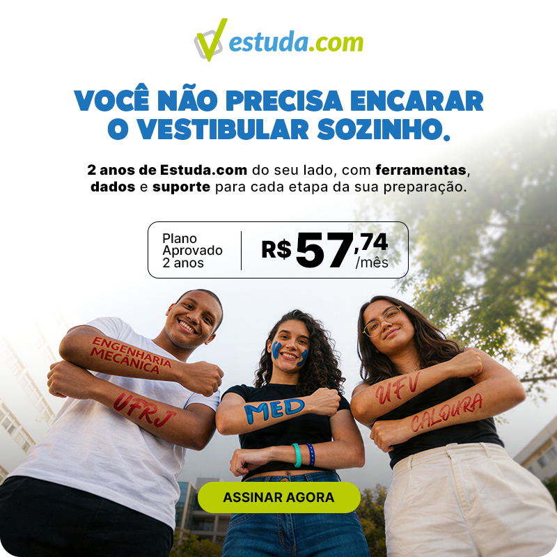 Na Estuda.com, você também treina com questões discursivas nos moldes dos principais vestibulares. É a chance de desenvolver melhor seus argumentos, aprofundar o raciocínio e ir além do “X” no gabarito. Pra quem quer intensificar a prática, é só adquirir pacotes avulsos com questões todo mês.